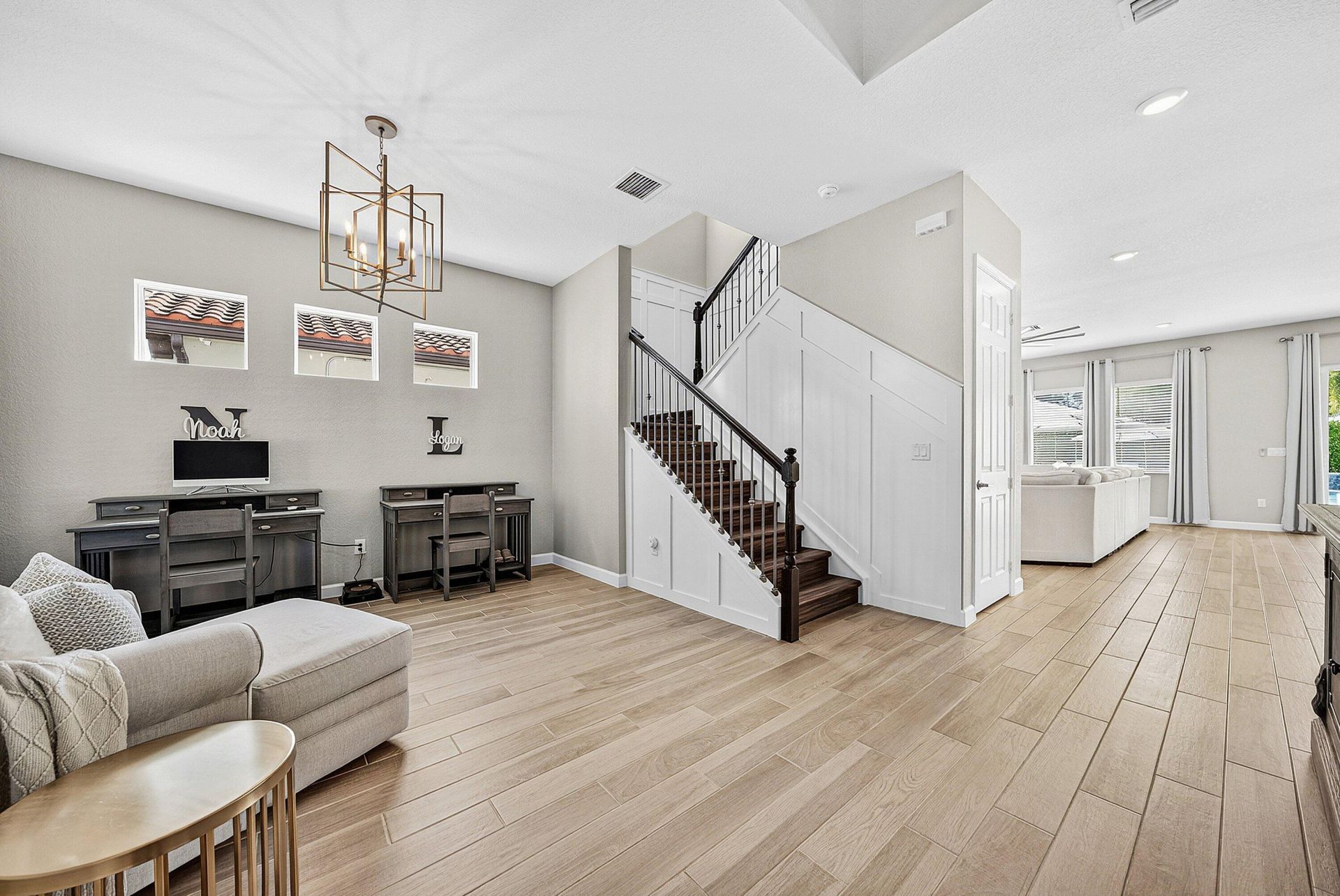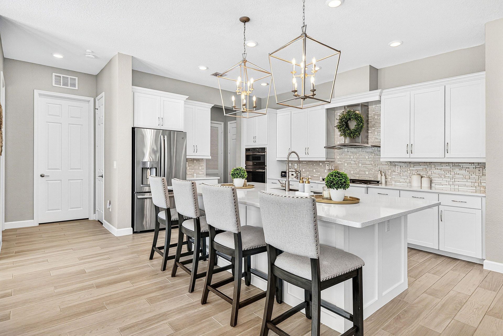 Welcome to this highly upgraded Lennar Chelsea model in the award winning Arden community, offering 5 bedrooms, 4 bathrooms, and 3,361 square feet under air. This beautiful home features upgraded flooring throughout with no carpet, an upgraded gourmet kitchen, upgraded glass front door, upgraded stair railing, upgraded light fixtures, ceiling fans in all bedrooms, living room, and loft, custom closets, custom bathroom and office cabinetry, built in safes in the primary closet and office, camera system, and Ring alarm with door and motion sensors throughout. Step outside to a resort style backyard designed for both relaxation and entertaining, complete with a saltwater 40 x 20 pool featuring two sun shelves, bubblers, fire wall, autofill and auto drain, LED lights, and LED water sheers. The covered outdoor kitchen with pergola includes a natural gas grill, flat top grill, ice machine, sink, and two refrigerators. Additional exterior upgrades include solar panels, whole house generator, landscape lighting, permanent holiday lighting, SWAT mosquito system, gutters, privacy landscaping, side walkway, and a fully fenced yard. A rare opportunity to own one of Arden's most impressive Chelsea models with exceptional indoor and outdoor living.