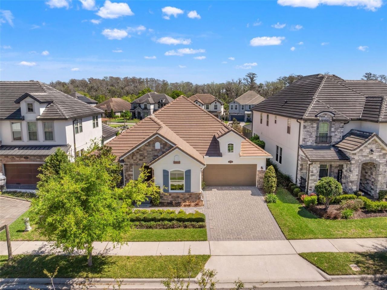 One or more photo(s) has been virtually staged. PRICED TO SELL! Incredible value! Welcome to Belle Vie, Lake Nona's French Country inspired community of fewer than 100 homes, where charm meets luxury living. With scenic parks, walking trails, a peaceful wetlands boardwalk and no CDD, this sought after enclave is truly one of a kind. Homes here rarely become available, only one has sold in the past year! This immaculate one-story pool home stands out for its pristine condition, thoughtful design, and ideal setting. Perfectly positioned on a private, fenced lot with low-maintenance turf and views of a lush green park space, it offers a serene backdrop just steps from the community mailbox pavilion. From the moment you arrive, you'll be captivated by the charming curb appeal, mature landscaping, and a welcoming covered front porch that perfectly complements the home's French Country architecture. Inside, an open-concept layout combines comfort and elegance, featuring wood-look tile floors throughout the main areas and plush carpeting in the bedrooms. The gourmet kitchen is the heart of the home, complete with an expansive quartz island with seating, stainless steel Whirlpool appliances, double ovens, 42 cabinetry, and a walk-in pantry. A dedicated office area with built-in cabinetry and desk space offers both function and flexibility, ideal for today's work-from-home lifestyle. The spacious primary suite provides a private retreat with access to a spa-inspired bath featuring a garden tub, glass-enclosed shower, dual vanities with quartz counters, and a large walk-in closet. Three additional bedrooms and two full baths ensure ample space for family and guests. Step outside to the covered lanai with remote-controlled shade screens, the perfect spot to unwind and enjoy the sparkling private pool surrounded by tranquility. Located just 15 minutes from Orlando International Airport, 10 minutes from Lake Nona's Boxi Park, 25 minutes from Disney, and 30 minutes from Cape Canaveral, this home offers both luxury and convenience in one of Central Florida's most desirable areas. Homes like this in Belle Vie rarely come available, don't miss your chance to make this exceptional property your own!