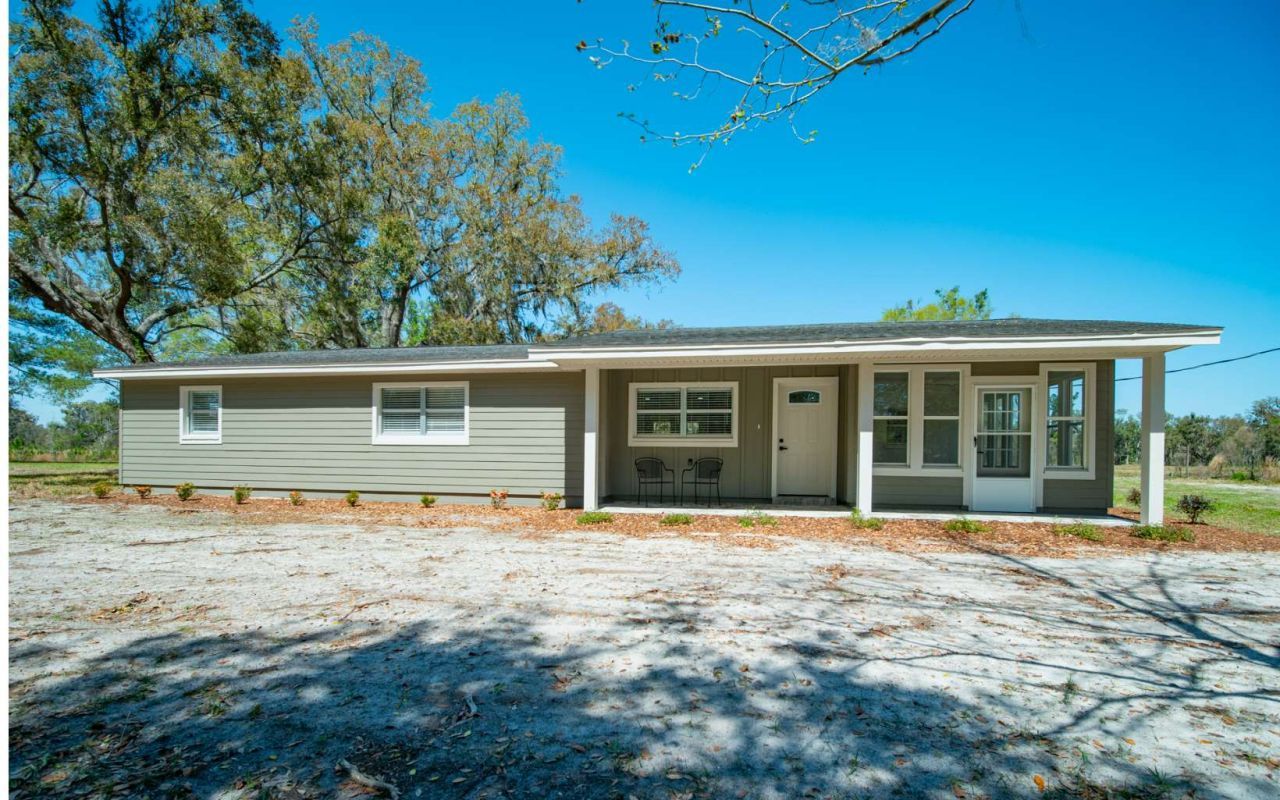 Modern living in a country setting: Stunning 3 BR/2 BA renovated home with country views on 5 acres! This country home, just minutes from Live Oak, offers a perfect blend of peaceful rural living and modern convenience. Features a beautifully renovated kitchen with custom linear tile, quartz countertops, all NEW matching stainless steel appliances, a coffee bar, and a large pantry. Enjoy great conversation at the island bar. The living room features a custom, built-in cabinet nook with matching linear tile from the kitchen. The very spacious utility room houses a new Maytag washer and dryer, and a water heater. New luxury vinyl plank flooring throughout, except in the bedrooms, you have plush low-pile carpet. Bathrooms are pristine with new vanities, new hardware, and lighting. In the master bath, a nice custom shower door complements that space. Walk-in closet in master bedroom. You must see the beautiful Florida room with all its light! New white vinyl windows there, really complement that flex space for: home-schooling, crafting, gym or just a den space. This home is a fortress from the elements: concrete block home fortified with Hardi lap siding with a trendy board and batten look. Porches are inlaid with beautiful pavers. The property is beautiful! Most of the 5 acres is in the back yard and has many huge, grandfather oaks! Very private, quiet and serene. Enjoy watching wildlife in your own backyard. High and dry too! Two covered carports for your toys or farm equip.