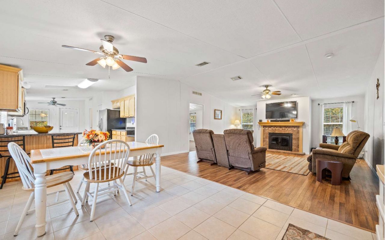 GREAT FLOORPLAN: Spacious 4BR/2BA double-wide manufactured home on 1.84 acres in the highly sought-after Three Rivers Estates. This home an amazing floorplan with a large bonus room featuring a wet bar with full-size refrigerator, a cozy living room with gas fireplace, and a kitchen with breakfast nook. The owner’s suite includes a bathtub, separate shower, and double-sink vanity. Tile flooring in the kitchen and bathrooms, vinyl flooring in living areas, and carpet in bedrooms. Exterior features include a 20x24 covered front porch with handicap ramp, 1-car attached carport on one side, covered patio on the other, and a storage shed. Metal roof replaced in 2021; septic drainfield replaced in 2024. Seller provides a termite bond and home warranty for added peace of mind. Three Rivers Estates offers access to multiple parks along the Ichetucknee and Santa Fe Rivers with a voluntary TREPO membership of $175/year. All of this is located near the beautiful and historic Suwannee River, Santa Fe River, Ichetucknee Springs, and numerous crystal-clear freshwater springs—an absolute dream for water lovers. Conveniently situated between the quaint towns of Fort White and Branford for everyday shopping and dining, and just a short 30-minute drive to Lake City or approximately 45 minutes to Gainesville. Schedule your showing today.