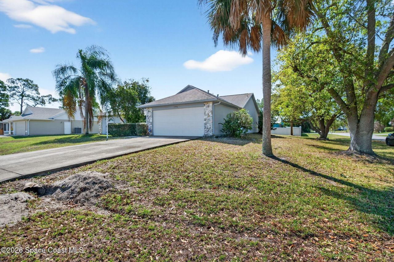elcome Home! Sitting pretty on a raised corner lot, this home brings the vibe w/ a sparkling south-facing pool made for sun-soaked days & easy Florida living. Inside, a split floorplan delivers the perfect mix of privacy & flow, while soaring vaulted ceilings elevate the space & make it feel open, bright & inviting.The primary suite offers your own retreat w/ double vanity, soaking tub, walk-in shower, large closet & separate commode. The kitchen is the heart of it all w/ real wood cabinets, SS appliances, breakfast bar & skylight, all overlooking the main living space & pool. The living room brings the cozy w/ a stone gas fireplace, while tile in main areas & natural light throughout tie everything together.Big-ticket updates? Done. A/C 2017, HWH 2025 & full hurricane impact doors & windows. Indoor laundry, sprinkler system & more.Morning coffee by the pool, friends over at sunset, fireplace nights when it cools off--this one just feels right.