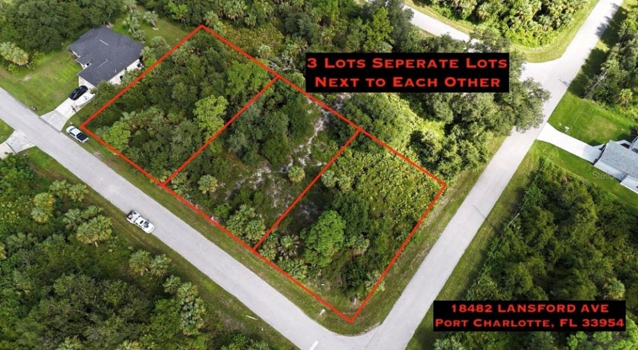 RARE TRIPLE LOT OPPORTUNITY! Discover the perfect canvas for your Florida dream home or next investment project with these three oversized, buildable residential lots totaling 0.73 acres (31,829 sq. ft.). This unique offering includes a prime corner location and provides the ultimate flexibility: build one massive private estate with a sprawling pool and detached workshop, or develop three separate homes in a high-demand area. Situated in a quiet, established Port Charlotte neighborhood with NO HOA, NO CDD fees, and located in a coveted NO FLOOD ZONE, this property offers peace of mind and significant cost savings. The heavy lifting has already been done with both Boundary and Topographic surveys completed and electricity available on-site, making this a true ready to build site.Location is everything, and this property delivers. You are just 3 minutes from the city center and a short drive to the vibrant downtown Punta Gorda, the brand-new Sunseeker Resort, and the world-famous golfing of Rotonda West. Enjoy easy access to elite shopping, dining, and top-rated schools, all while being minutes away from the pristine Gulf beaches of Englewood and Venice. Close to Famous Warm Mineral Springs and Wellen Park! Whether you are looking for a spacious footprint for a luxury pool home or a savvy multi-unit development, this land is the perfect choice. Information on reputable local builders is available upon request. Secure this massive footprint today and start building your future in paradise!