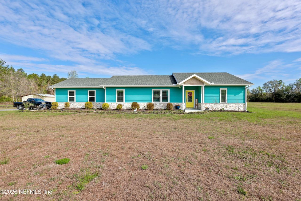 Welcome to an extraordinary opportunity to embrace the best of quiet country living and small-town ''Old Florida'' charm. Nestled on approximately 5 +/- acres, this property offers unparalleled privacy and picturesque views of the natural Florida landscape and wildlife. This isn't just a home; it's a rare blank canvas where you can create the ranch or farm retreat you've always dreamed of. Zoned for agricultural use, imagine creating a homestead complete with horses, goats, chickens, bees and other animals while cultivating your own vegetable garden and enjoying fresh produce from your own fruit trees. As you step inside, this low-maintenance, energy-efficient home presents a spacious open-concept layout that boasts an abundance of natural light and seamlessly connects the living areas to create a warm and inviting home ideal for everyday life and entertaining friends and loved ones. The expertly designed gourmet kitchen is a true showstopper, balancing sophisticated aesthetics with everyday efficiency and functionality. The space features a massive prep island with a built-in cooktop and a separate California-style breakfast bar, providing an ideal setup for casual dining and entertaining while ensuring a harmonious flow into the family room and formal dining area. Custom-built quality cabinetry offers integrated storage solutions, while artisan details elevate the room, from premium stainless-steel appliances and elegant quartz countertops to the deep farmhouse sink, designer tile backsplash, and dedicated beverage station. Optimized for the 2026 spring market, this chef's kitchen defines modern luxury in Northeast Florida.The owner's suite is a retreat for relaxation and privacy, offering ample space for a king-sized furniture set and complemented by an elegant ensuite bathroom highlighted by a spacious walk-in closet, floor-to-ceiling tiled walk-in shower, double-sink vanity and a linen closet for extra storage.Discover modern comfort with low-maintenance LVP flooring and a fresh, neutral palette throughout. The secondary bath offers premium finishes, including a quartz vanity and tiled bath/shower combination. A standout feature is the oversized multi-functional laundry room, complete with a utility sink, additional pantry storage and plenty of counter space.Start your mornings on the screened-in lanai immersed in the peace of quiet country living, then transition to the firepit to toast the sunset over your private acreage. When the Florida heat climbs, the sparkling pool offers a refreshing escape and the perfect centerpiece for summer cookouts. A true haven for the modern homesteader, this land is primed for vibrant native landscapes and a flourishing edible garden. Whether you're harvesting fresh fruits and vegetables or raising horses, goats, bees and chickens, the property provides the ultimate foundation for outdoor enthusiasts. Anchored by an oversized 2-car garage, a high-clearance RV carport, a pole barn, and a massive 12x36 shed, this estate offers unmatched storage capacity without compromise.Centrally located, you'll enjoy easy access to schools, medical care, restaurants, shopping, State parks and water access, with convenient commutes to many other points of interest in northeast Florida. Don't miss your chance to own this unique slice of country paradise! House is being sold As-Is. NO CREATIVE FINANCING OR BLIND OFFERS!