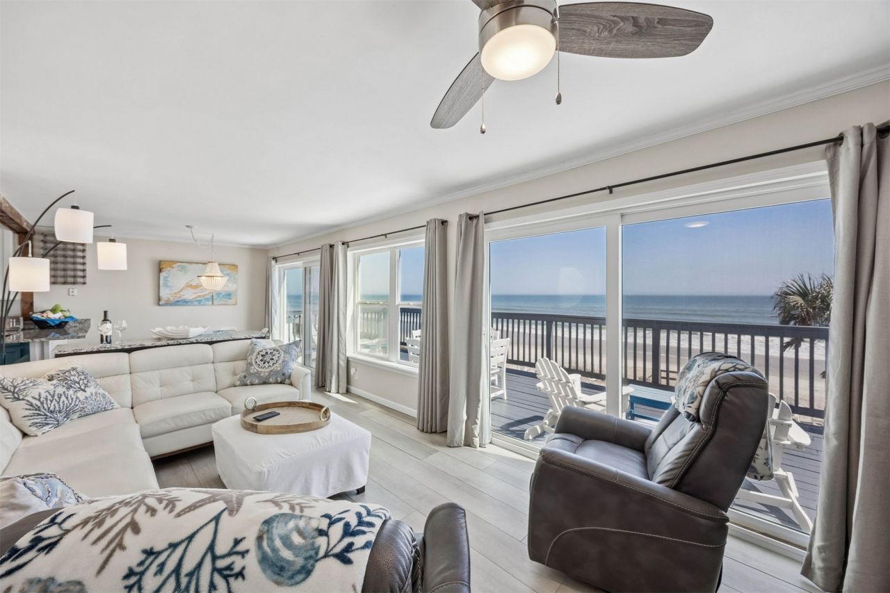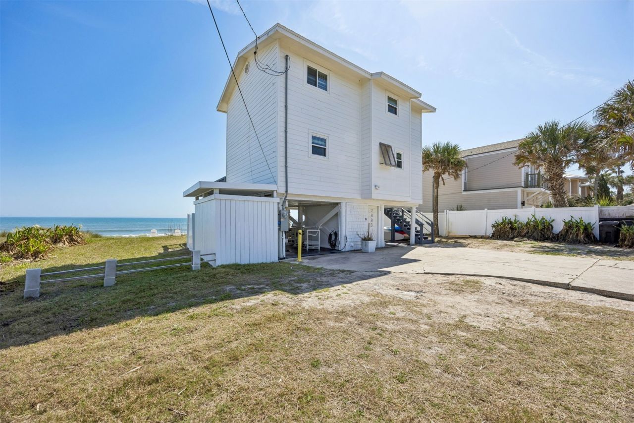 Experience oceanfront living in South Ponte Vedra with breathtaking sunrises and unobstructed views of the Atlantic Ocean and Guana State Park. Elevated on pilings, the home offers a covered outdoor entertaining area and a large oceanfront deck with access to the living room, dining area, and kitchen. Upstairs features three bedrooms and two full baths, plus a third full bath downstairs for convenience. Steps from the sandy beach, the home has been a 5-star Airbnb, 2025 Reviewers Award Winner - and sleeping up to eight guests. Recent updates include seawall, irrigation, siding, windows, roof, electrical, flooring, plumbing, faucets, appliances, granite countertops, water heater, condenser, and exterior shower, providing worry-free coastal living. Just minutes from the historic St. Augustine district, this turnkey oceanfront retreat combines the best of beachside relaxation and convenient access to world-class dining, shopping, and culture.
