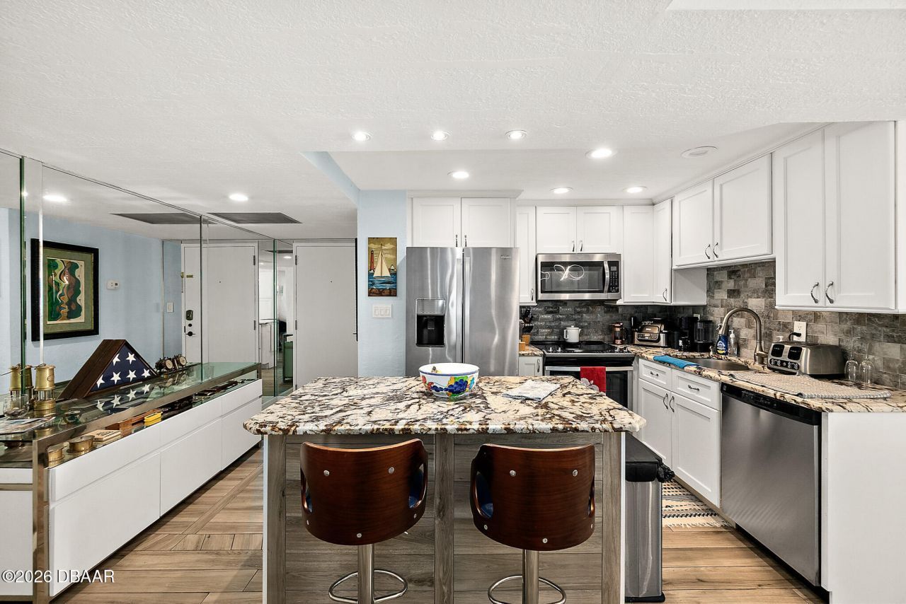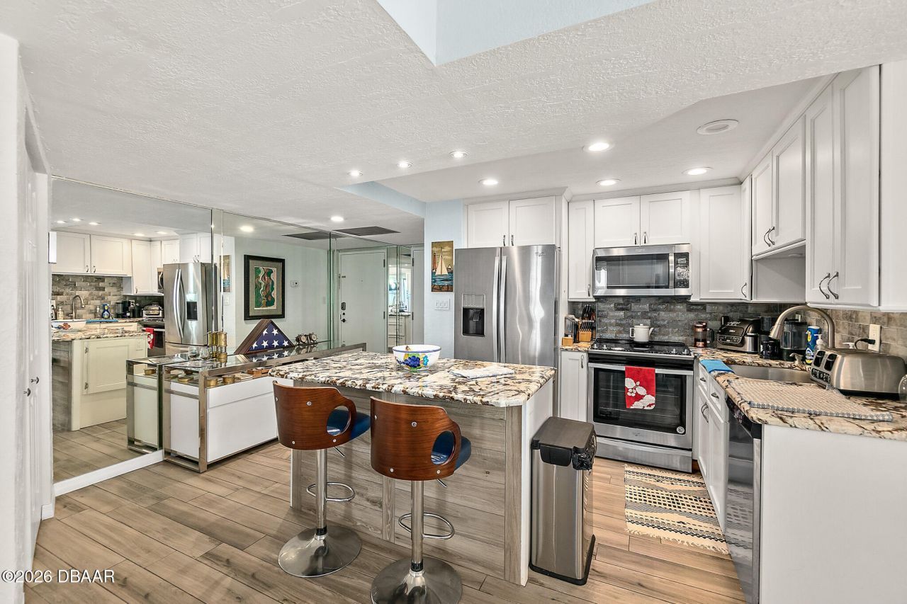 -GET READY TO BE ABSOLUTELY WOWED BY THIS FULLY UPGRADED *OCEANFRONT* MASTERPIECE. -FEATURING THE MOST DESIRABLE FLOOR PLAN IN THE BUILDING AND DESIGNED TO CAPTIVATE FROM *THE MOMENT YOU WALK THROUGH THE DOOR*. (Washer and dryer in unit) THE HEART OF THIS HOME IS A *CHEF'S DREAM KITCHEN* THAT TRULY STEALS THE SHOW. IT FEATURES WHIT *SHAKER-STYLE CABINETS ADORNED WITH SLEEK STAINLESS-STEEL HARDWARE AND A *STUNNING BACKSPLASH OF GREY TEXTURED *SUBWAY TILE IMPORTED DIRECTLY FROM PORTUGAL. THE DRAMATIC GRANITE COUNTERTOPS, BOASTING *BOLD GOLD AND GREY VEINING, PROVIDE A SPECTACULAR FOCAL POINT. COMPLEMENTING THIS DESIGN IS A MASSIVE *EXTENDED BREAKFAST ISLAND WITH A *LIGHT WOOD-FRONTED BASE, PERFECT FOR CASUAL DINING OR GRAND ENTERTAINING, ALL ANCHORED BY HIGH-END *STAINLESS STEEL APPLIANCES.THE SOPHISTICATION EXTENDS BEYOND THE KITCHEN WITH BEAUTIFUL *GREY TILE FLOORING THAT FLOWS SEAMLESSLY THROUGHOUT THE ENTIRE OPEN-CONCEPT SPACE. EVEN MORE EXCITING IS THE CUSTOM BUILT *BUFFET WITH SHAKER CABINETS OFFERING *EXTENSIVE STORAGE, *GRANITE COUNTER, *MIRROR AND *RECESSED LIGHTING. OTHER NOTABLE FEATURES INCLUDE *Electric hurricane shutters *Updated slider* Motion sensor lighting* Under cabinet lighting in bathrooms *Updated tile throughout * Enlarged primary bath with his and her sinks * Rain shower faucets with *LED lights in bathrooms. *Full wall of closets in second bedroom with *barn doors and so much more! SECURED UNGROUND ASSIGNED PARKING WITH ADDITIONAL MOTORCYCLE PARKING AVAILABLE. AMPLE GUEST PARKING UPSTAIRS. PRIVATE LARGE STORAGE CAGE FOR ALL YOUR BEACH NEEDS. OCEANS SEVEN OFFERS SOME OF THE BEST AMENITIES: OUTDOOR POOL WITH EXPANSIVE POOL DECK, BBQ STATION, SAUNAS, TWO SOCIAL ROOMS, GAME ROOM, DIRECT BEACH ACCESS. No pet building. 30 day first right of refusal. This home is in a sought-after location close to Publix, restaurants, shopping, minutes to Ponce Inlet Historic Lighthouse, just over an hour to Disney/Orlando and three-and-a-half hours to Miami. All information intended to be accurate but should be verified.