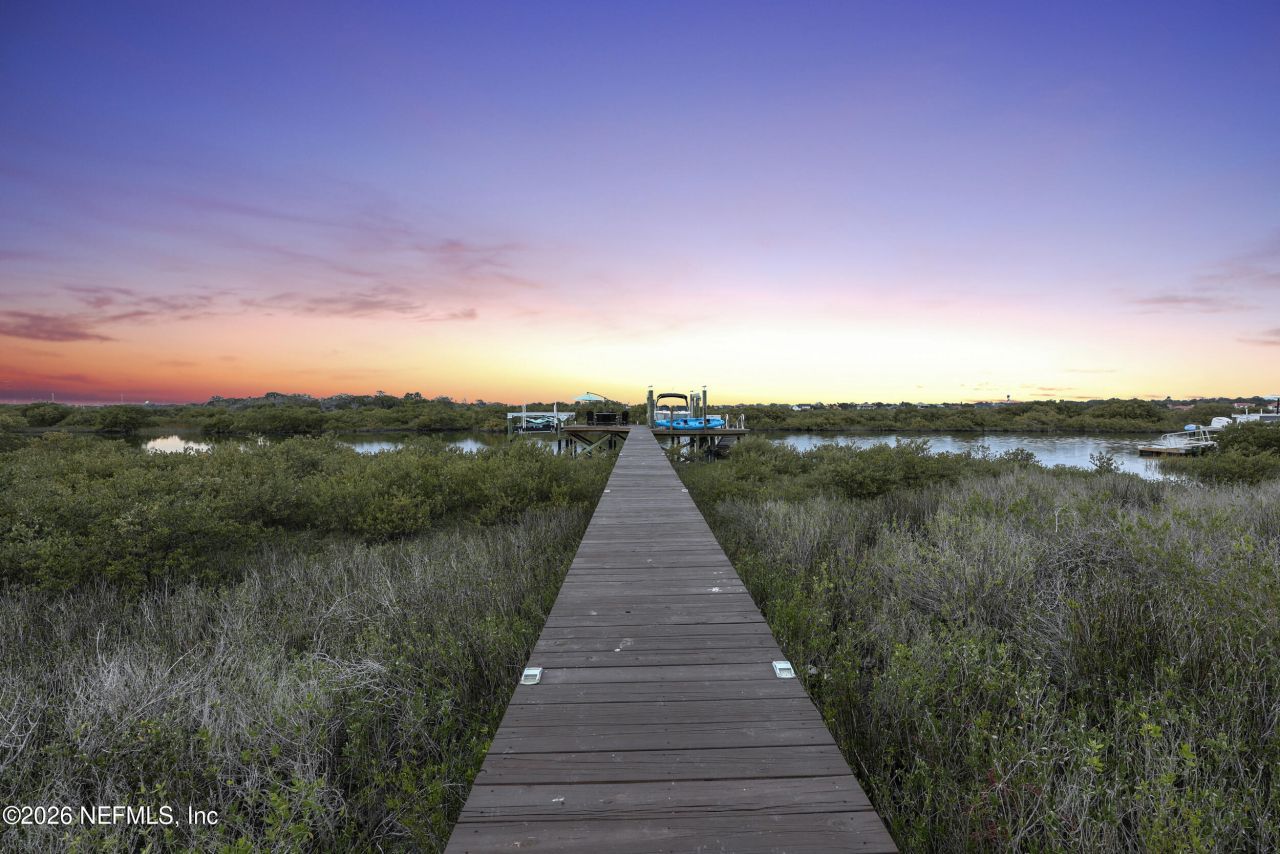 ICW access!Welcome to your private waterfront sanctuary where refined luxury and effortless coastal living converge. This impeccably designed 4-bedroom, 3-bath residence has been thoughtfully curated with modern upgrades and premium finishes throughout.At the heart of the home, a custom chef's kitchen impresses with striking waterfall countertops, gas-cooktop, designer lighting, and state-of-the-art fixtures perfectly suited for both everyday living and elevated entertaining. Seamlessly blending indoor and outdoor spaces, step onto the expansive $50,000 paver deck featuring a fully equipped gourmet outdoor kitchen with marble countertops and a new in-ground spa, ideal for hosting unforgettable waterfront gatherings.Beyond, the impressive dock delivers a true boater's dream, complete with a twin wave-runner lift, a full boat lift, floating dock, kayak holders, and gangway providing effortless access to the deep water adventures. Watch dolphins and Mantatee wildlife from your own home. The upstairs primary suite is a serene retreat, offering a private balcony with sweeping lighthouse views an idyllic setting to enjoy breathtaking sunrises and sunsets. The spa-inspired primary bath is nothing short of extraordinary, custom walk-in closets, and a lavish oversized shower featuring six showerheads, including an 18-inch rainfall shower, showcasing marble tiles and stone-pebble flooring.Additional highlights include elegant Jellyfish exterior lighting, an oversized 8-foot garage with a striking tri-color epoxy floor, and a living room designed to impress with an electric fireplace and triple sliding glass doors framing unobstructed water views. Outside, relax in the new 8-person hot tub nestled among beautifully designed pavers, creating a tranquil oasis under the open sky. The Antigua community offers an in-ground pool and kayak launch and is just a short drive away from shopping fine dining and the St. Augustine beach. The dining room's extended bay window sets the stage for memorable evenings, offering stunning sunset views that elevate every meal. With all-new landscaping enhancing its curb appeal, this exceptional home embodies the pinnacle of waterfront luxury living where every detail has been carefully considered and every view is simply unforgettable.