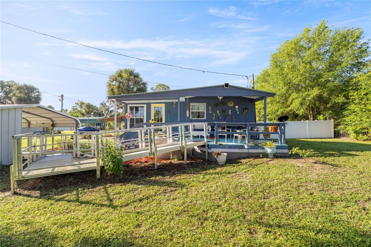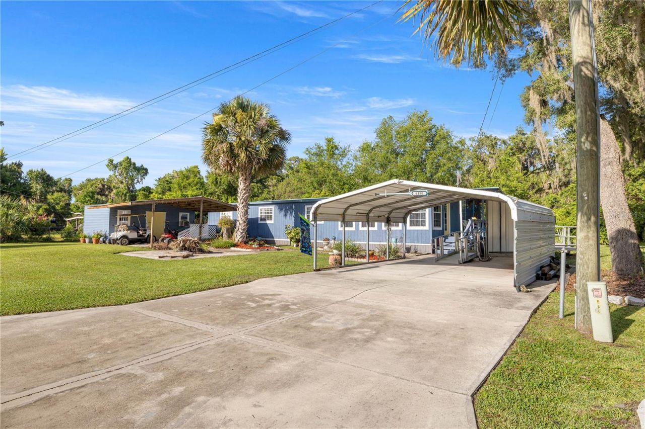 Welcome to Your Slice of Paradise in Salt Springs! Nestled in the heart of the Ocala National Forest, this beautifully upgraded and expanded home offers the perfect blend of comfort, functionality and Florida charm. Don't be fooled by its single-wide beginnings-this property has been thoughtfully remodeled and transformed into a spacious and inviting retreat. Step through the covered two-car carport and galvanized ramp into a cozy den, ideal for a home office, TV room, or relaxing hideaway. From there, enjoy a bright and open living and dining area that flows seamlessly into an oversized chef's kitchen-fully renovated in 2023 with brand-new cabinets, countertops, appliances, and abundant storage and prep space. Gorgeous solid oak flooring adds warmth and character throughout. The bathroom was tastefully updated in 2021, and essential systems have been upgraded for peace of mind, including a new HVAC system (2021), water heater (2021), and durable metal roof for long-term protection. Step out back to your private, vinyl-fenced porch-perfect for sipping morning coffee or unwinding in the evening. The property also features an 16x20 powered workshop/storage shed with a covered overhang, ideal for hobbies, tools, or extra storage. Set on beautifully landscaped grounds, this home is located just one block from the community boat ramp-providing access to stunning Lake George, Florida's second-largest lake-for only $100/year. Enjoy days filled with boating, fishing, swimming, or exploring nearby trails and springs. Conveniently close to the Salt Springs Marina, shops, restaurants, and more. Whether you're seeking a weekend getaway or a peaceful full-time residence, this well-maintained gem has it all. Motivated seller-schedule your private tour today!